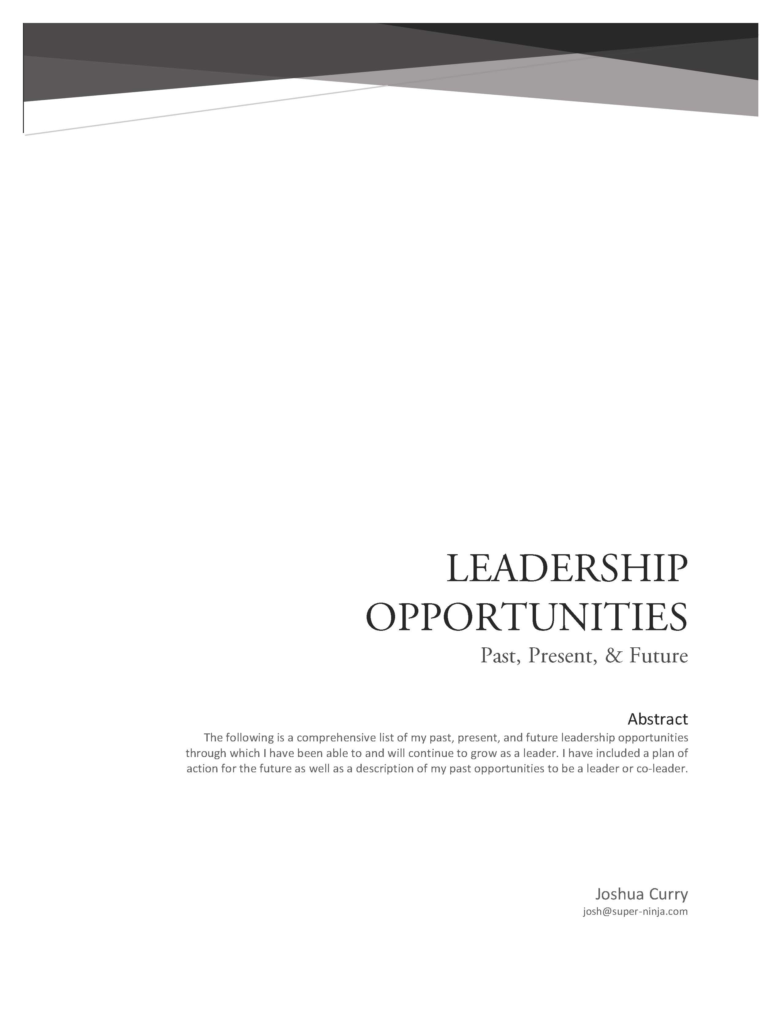 My leadership philosophy is quite unique. Many people would say that there can never be more than one leader in a group or organization as that would cause stress, confusion, and conflicts of interest. I believe that every leader must know how to fit into many different roles. These roles range from being a follower to being a leader, ruling with force to ruling with kindness, leading by example to leading by authority, and being dictatorial to democratic when making decisions. I believe the most important quality of a good leader is not being able to fit into any one of these specific styles of leadership, but rather knowing how to switch between roles and be the best leader for each individual experience and/or person.