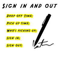 In order to keep track of kids and who they leave with, we have a sign in and sign out sheet that needs to be filled out each day by their authorized